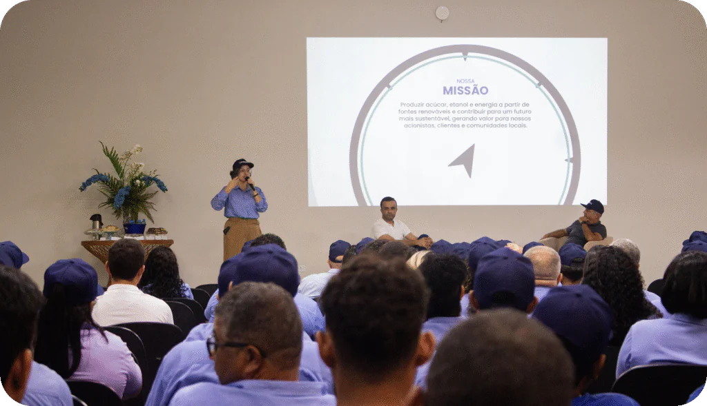 Trabalhamos constantemente para reduzir os impactos de nossas operações. Em 2024, reduzimos em 56% os resíduos enviados a aterros, implantamos torres de resfriamento para circularidade da água e reforçamos o uso da biomassa da cana como energia limpa. Também utilizamos a vinhaça como adubo orgânico e participamos do RenovaBio, gerando Créditos de Descarbonização (CBIOs) que contribuem para a redução de emissões de carbono.